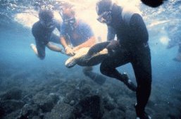 studied for 15-20 minutes. After which the turtle is released back into the water. |